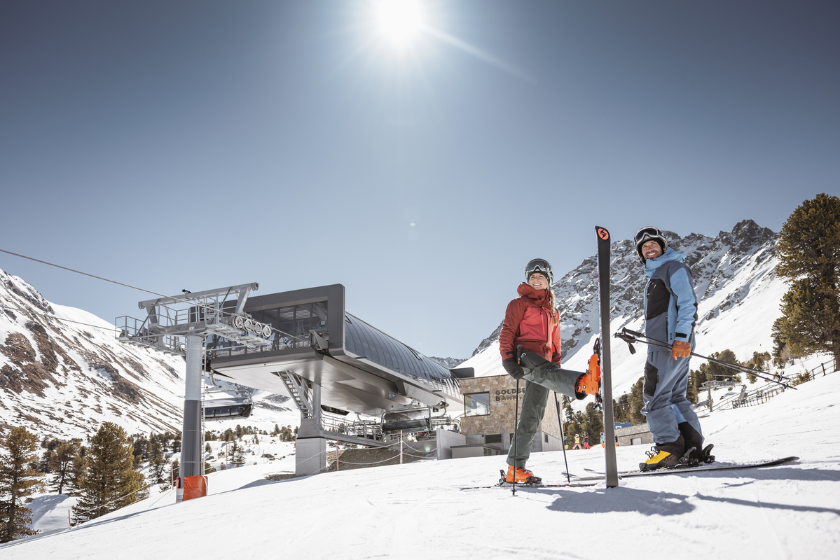 The new Goldpark includes the comfortable Goldseebahn lift with its family and child-friendly Goldsee piste, the Bergkastel snow base and Nauderixland. The public area at Bergkastel is equipped with two ultra-modern, covered conveyor belts and is particularly suitable for beginners and novices.