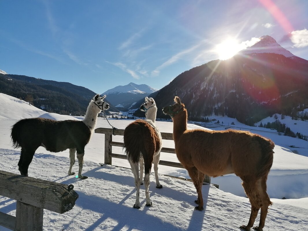 Each week you are invited to a relaxed llama trek in Nauders. On each trek, you will guide the lama by the halter, discovering interesting facts about the origins and distinctive features of these animals.