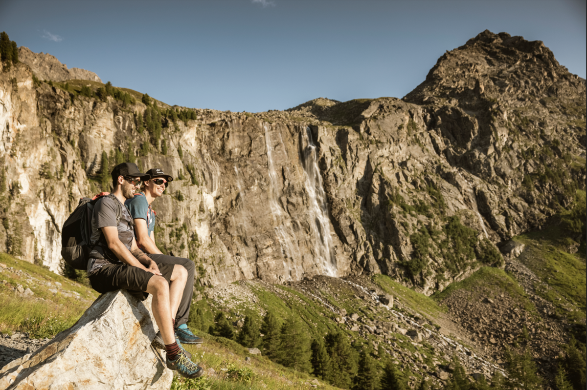 From there, a hiking trail leads to the Fendler Alm and on via the Zirmesköpfle to the well-known Anton Renk Hut. From there, continue downhill towards the Stalanzer Alm, where you then have the option of turning left and taking the new panoramic trail directly below the Anton Renk waterfall. Alternatively, you can opt for the Anton Renk trail. The panoramic trail takes you directly below the waterfall, where you will feel the power of the mighty masses of water up close.