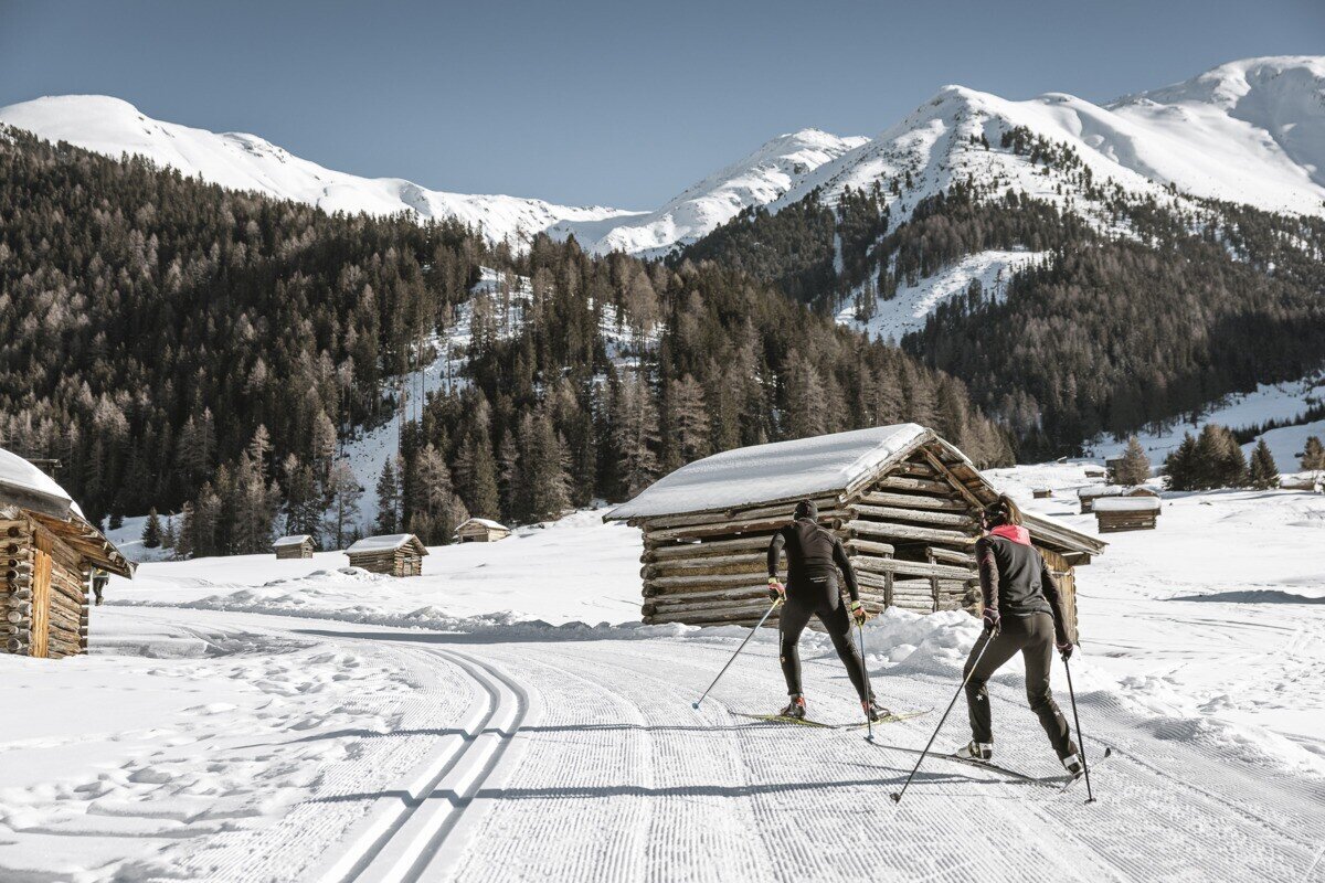 The high-altitude cross-country trail starts directly at the “Tscheylücke” parking area and runs as a circular route through the unique high valley of Tschey close to Pfunds. Along the 3 or 6 km trail, you can enjoy the crystal-clear winter air and breathtaking mountain views in a peaceful snowy landscape.