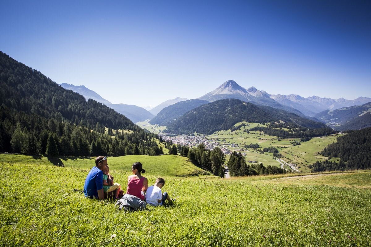 A romantic round-trip: The hiking taxi takes you from Nauders to Labaunalm. A few metres below the alpine pasture, the route (No. 16a) leads for a while through a sparse larch forest and then down to a road. Further over the Labaunbach, over dry grass meadows up to the Bazahler meadows. At the back you come across Hiking trail no. 16 and reach the highest elevation of the Bazahler Köpfe at about 2,160 metres. Some of it is a bit steeper through edelweiss meadows at the foot of the Fluchtwand. The steep red Trail no. 15a leads north to the summit cross of the Fluchtwand at 2,328 m. This mountain inspires with the unique view of three countries and the mighty, surrounding mountains. The way back is via Trail no. 15 and 14 to Labaunalm and past the Parditschhof back to Nauders (No. 14 or 14a)