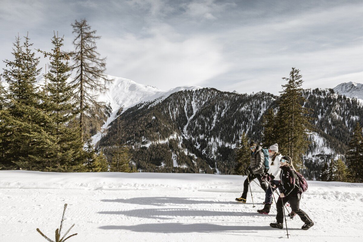 From the village of Pfunds, drive towards Greit until you reach the Tscheylücke parking area at the roundabout. The winter hiking trail starts here. From the parking area, the route leads left up towards Frudiger. Always follow the winter trail signage. The pleasant winter hiking trail winds through the forest towards Greider and is regularly groomed. It is ideal for a relaxed winter walk through the peaceful snowy landscape. If you wish to continue to the summit of Frudiger, snowshoes are recommended, as the trail is no longer groomed beyond the end of the marked winter hiking path.