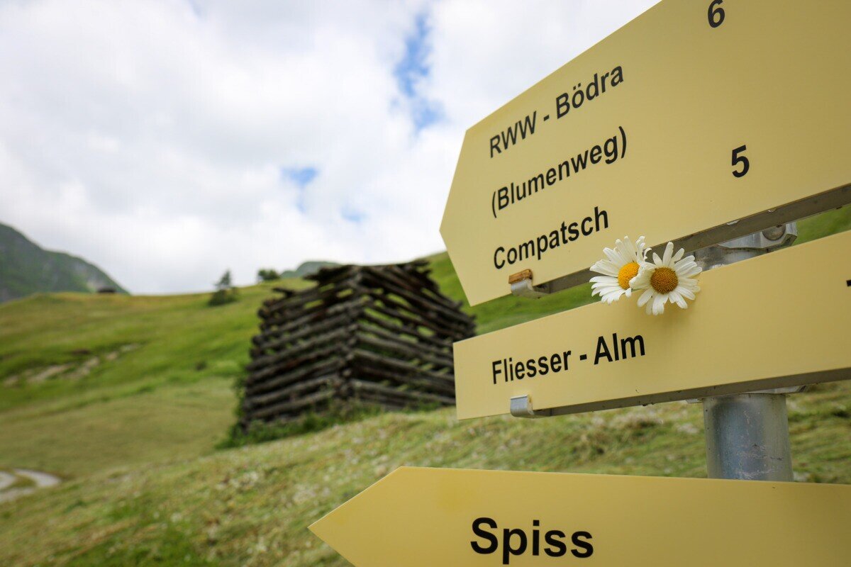 The hike starts at Haus Edelweiss in Spiss. From there, the trail gently ascends along the Spiss protected forest, passing impressive larch trees that are 500 to 600 years old. Please note: motor vehicles are not permitted on the forest road. The route continues up to the Mutta at around 2,100 m, offering panoramic views. It then leads on to Walmutköpfl and down to Kälberhütte at 1,922 m. The return follows the Kälberberg trail back to the forest road and finally to Spiss.