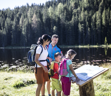 The source of life and a fascinating element Of course, we can’t miss out water from our “3-way” walk, and this takes the form of the picture-perfect Schwarzsee. The surrounding area is not just an idyllic oasis of calm, but also a natural habitat for many of the regional plants and animals. You children will love listening to the frogs croaking in the springtime.