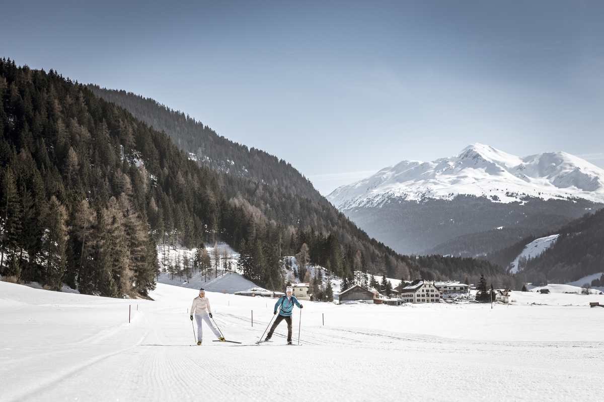 Nauders in Tyrol is located on the border with South Tyrol in the border triangle of Austria, Switzerland and Italy. Together with the Reschen Pass, the village offers a very diverse and boundless cross-country skiing experience with a total of 90 kilometres of groomed trails in Austria and Italy.