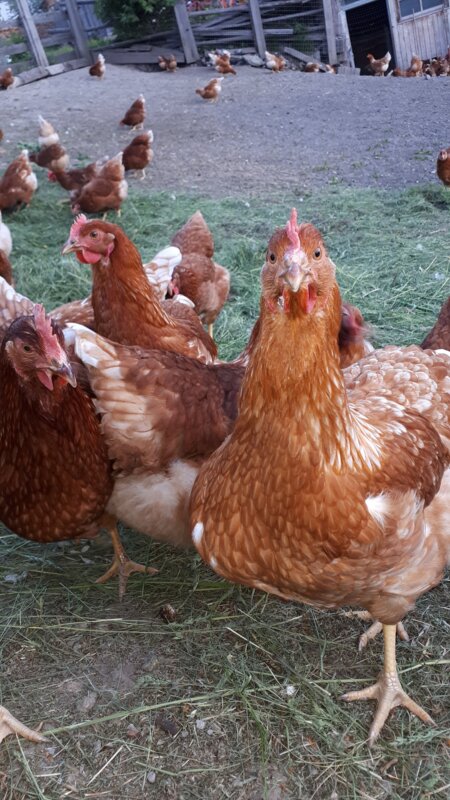 200 happy chickens live with free range at our farm "Rosenhof". No matter if there is sun or rain, wind or snow, the "feathered girls" have their daily exercise, a lot of fresh air and enough space.