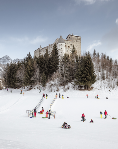 The huge natural ice rink with new created ice hockey field, a “tubing run” and a “Zipfel bob run” are the main attractions in the new “Winter Wonderland” in Nauders. While Mum and Dad enjoy the unique atmosphere beneath the lit Schloss Naudersberg with some good music and a glass of mulled wine, the kids have fun ice skating, or tobogganing.