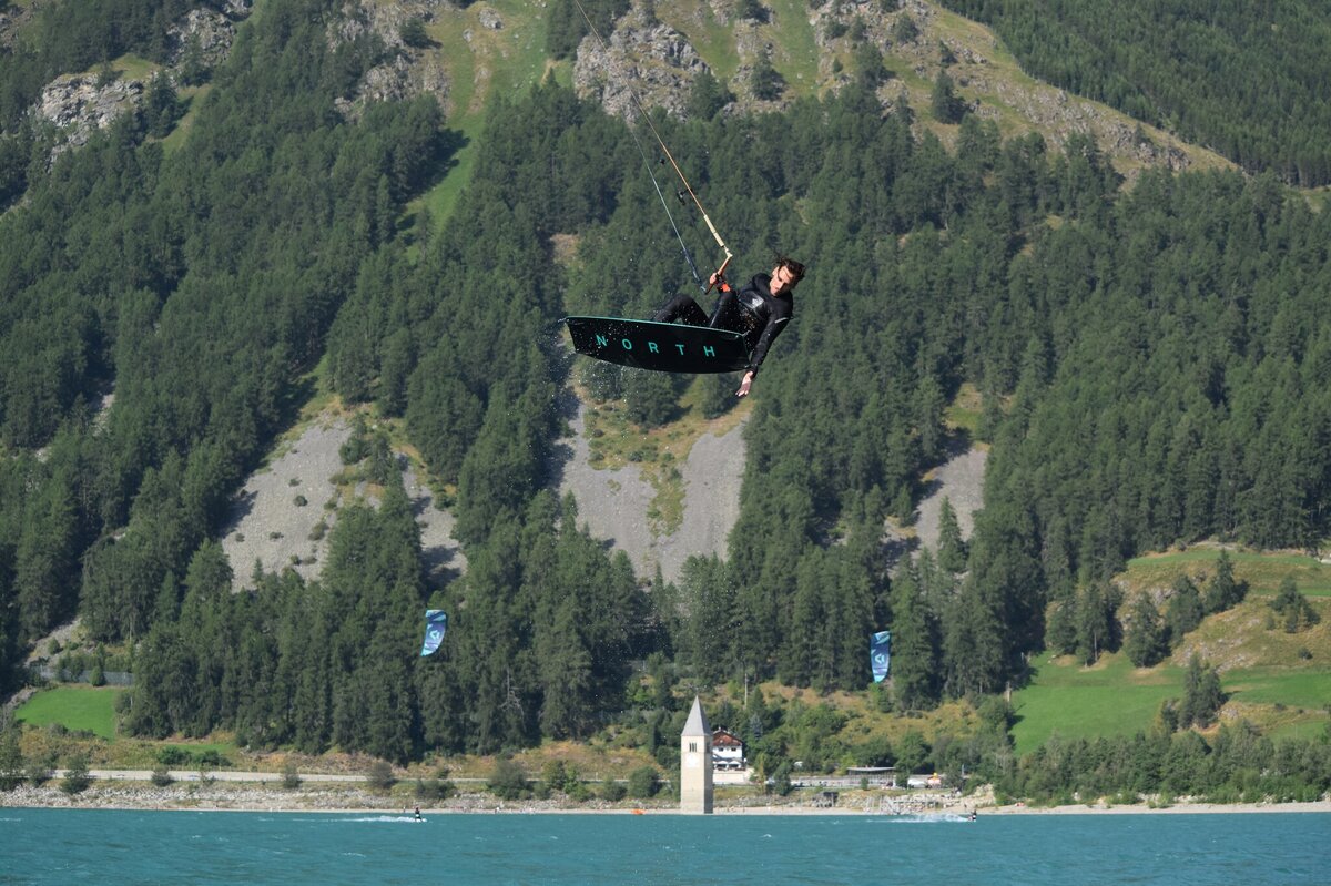 Our Kitejunkie kitesurfing school at Lake Reschen offers you the ideal introduction to the world of kitesurfing. Whether you are a beginner or an advanced rider, our experienced coaches will accompany you every step of the way. Book your course right here: Learn kitesurfing at Lake Reschen.