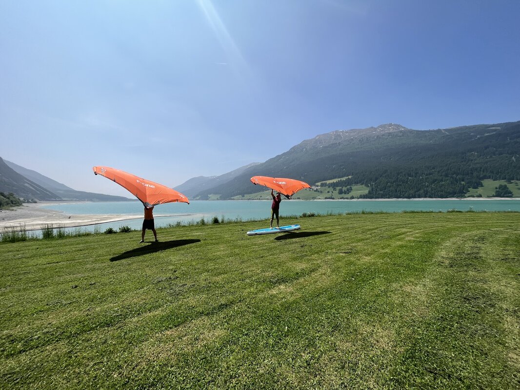 Our motto: “Your session is our mission” – and that's exactly what we live by every day. Whether you're looking for your first contact with the wind or want to take your skills to the next level: your adventure awaits at Lake Reschen!
