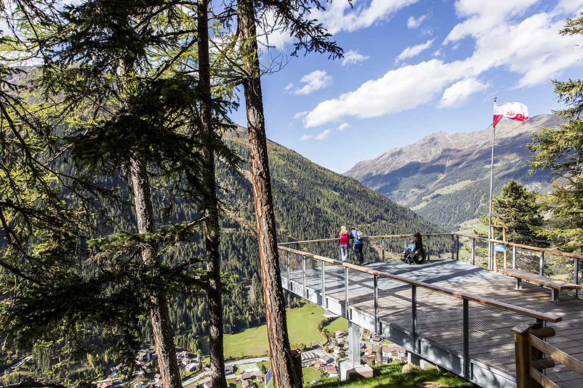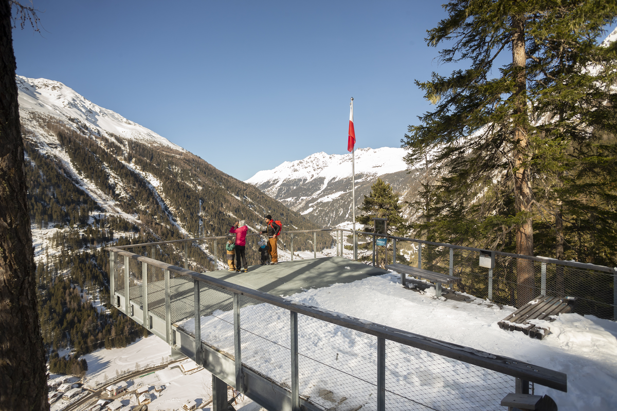 Kaunertal will inspire you with its kingdom of 3,000 m peaks, wild and silent nature, culture and magic locations. One of them is certainly the "Eagle eye"viewing platform.This was built on a more than 100 metre high rock wall above Feichten in Kaunertal. Furthermore, hikers also take a trip into the past: On the one hand, at the newly built ”Bergwerksblick”, or Mine View, and then during a round trip hike to the “Knappenlöcher”, or Mining Holes, and the Processing Hut.