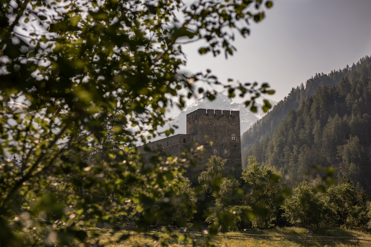 In 1225, the first Romanesque castle was mentioned for the first time, as "Hegeno de Berneggo". Ceramic finds and excavations indicate that construction work already existed in pre-Christian times. It is assumed that Berneck, which is located on the secondary route of the Via Claudia over the Piller, was built as an administrative castle for this area. After the lords of Berneck had died, in 1435 the castle came into the possession of the Swiss nobleman Hans Wilhelm von Mühlinen, retainer of Frederick IV. Under his hand, a far reaching renovation took place, the appearance changed to a late Gothic residential castle. After his death, the castle changed hands several times. At the end of the 15th century it was acquired by Emperor Maximilian I under whose ownership the last expansion was carried out. With the end of the Middle Ages, the castle fell more and more into ruin. In 1976, the Hörmann family bought Berneck and renovated it with years of loving and professional work. The castle is characterised by a mighty tower in the west and three courtyards, which divide the castle into three parts. On the north side a high wall of masterfully crafted masonry rises up. The Gothic bay window above the entrance gate is one of the oldest in Tyrol, as is the "gothic parlour" of Berneck, which has been able to be visited from 2007 after careful restoration to its old splendour. The castle chapel, dedicated to St. Bartholomew, contains important late Gothic frescoes, especially the altar fresco with St. John. Along the south side, a gallery leads over the 130 m high rock face and offers a breathtaking view into the depths.