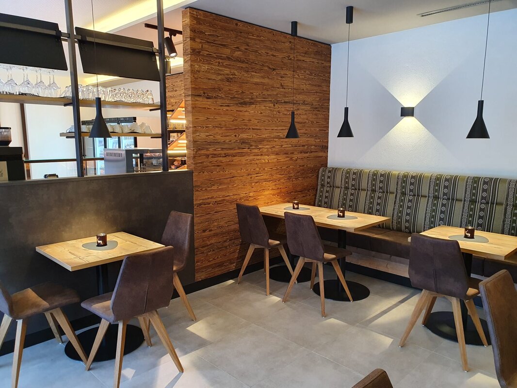 Cozy Café with different regional delicacies, breakfast offer and occupied bread rolls.