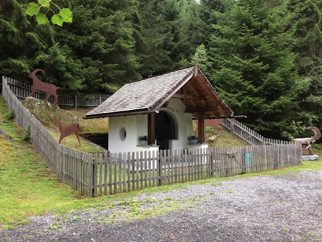The Jägerkapelle in Weiler Unterhäuser at 1,284 m is dedicated to Saint Hubertus and is owned by the community with special permission for hunters to use the 12m2 chapel area. The Kaunertal hunter’s guild under Rupert Auer and Engelbert Zauner built this open prayer area in 1994. The figure of Saint Hubertus the patron saint of hunters was sculpted by the Kaunertal artist Roman Gfall.
