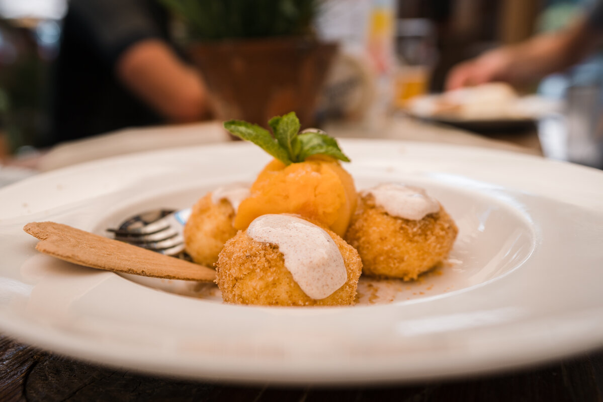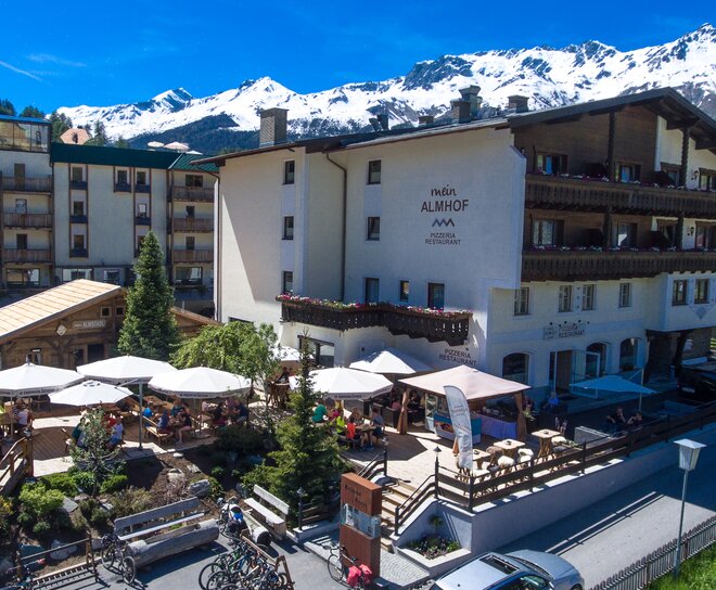In our Almhof Wirtshaus with Almstadl and fantastic panoramic terrace, we will spoil you with traditional, down-to-earth inn cuisine. The "place to be" for summiteers, winter sports enthusiasts and connoisseurs! Experience hearty culinary delights, irresistible ice cream creations, sweet temptations from our in-house patisserie, specialities from Tyrolean grey cattle or our unique veal butter schnitzel in convivial company with family and friends. This is the new Almhof Wirtshaus in the most beautiful place in Nauders am Reschenpass.