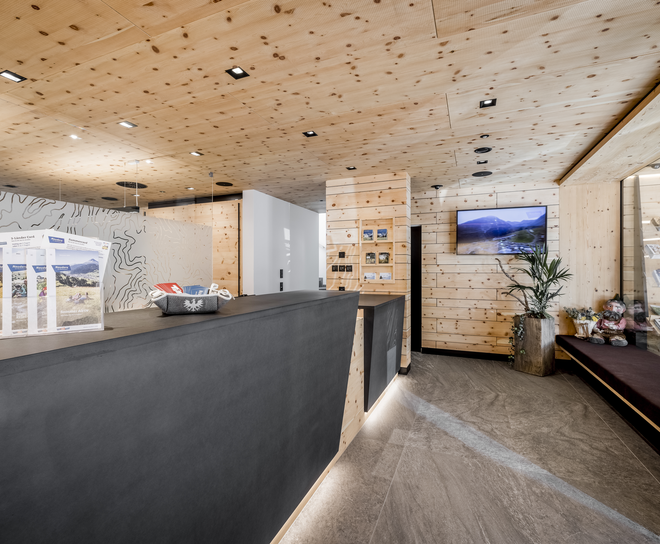 Since november 2020 the tourist information Nauders blazes in a new gloss. For a comfortable guest-service the service center is enlarged and renovated. The new and comfortable self-service area is daily open from 07.00 am - 10.00 pm for all guests and offers a wide range of prospects and informations for free.