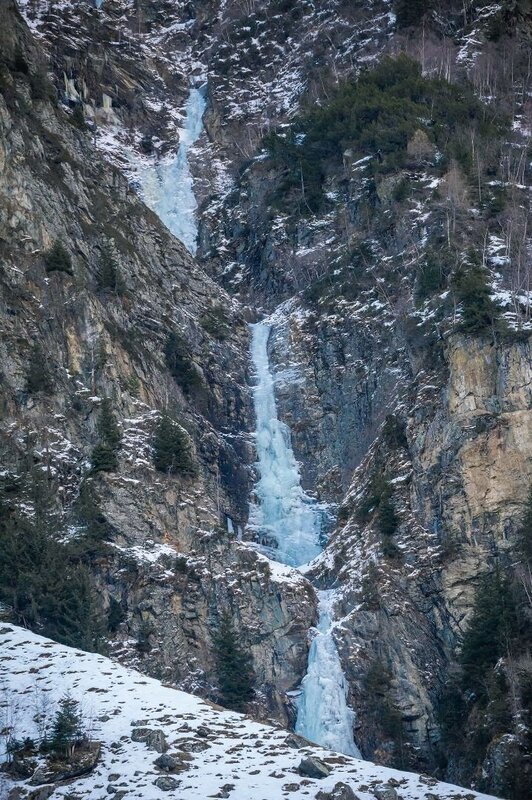 Caution: A large icicle often forms on the second-last level (20 m) due to the direct sunlight from the west please proceed with caution when the sun is shining! Also very high avalanche risk in the spring.