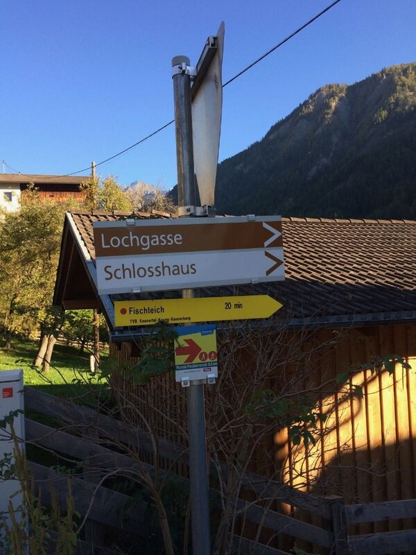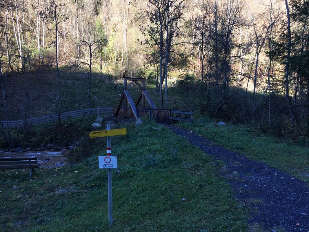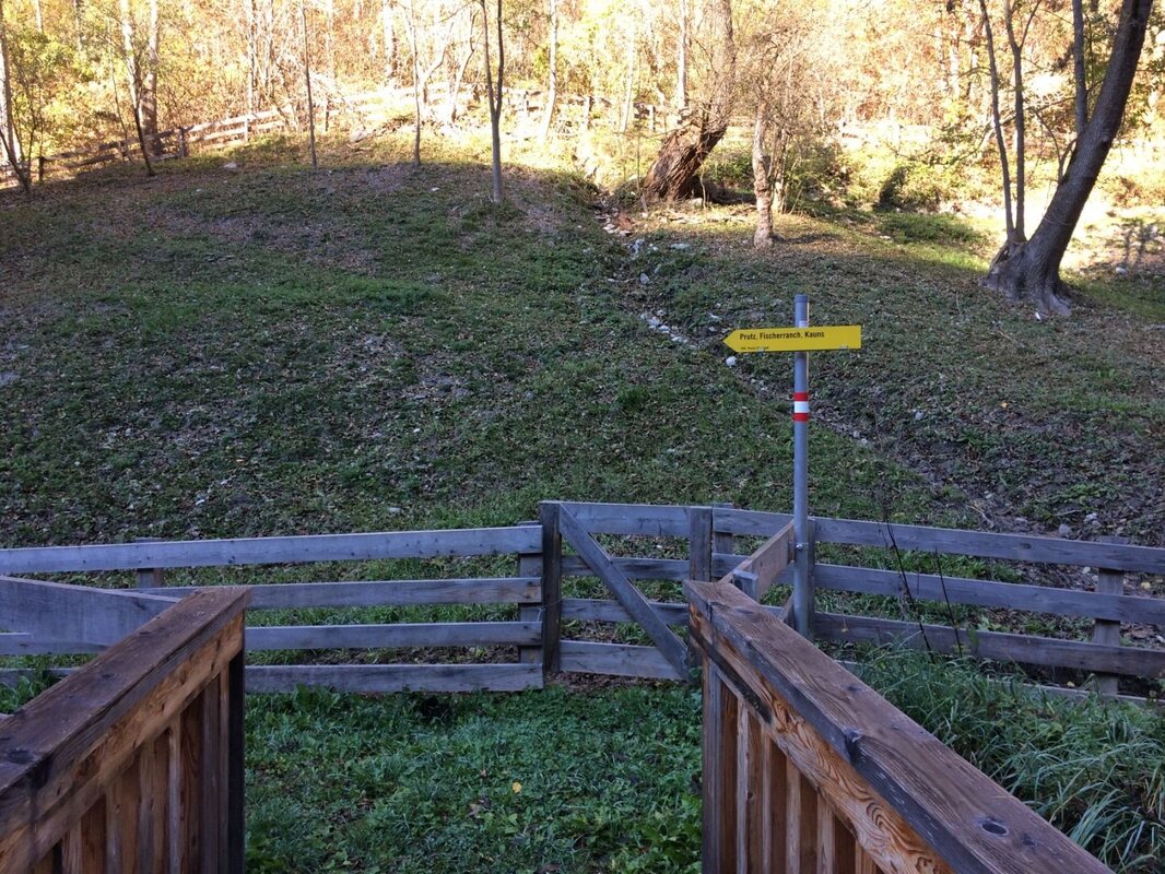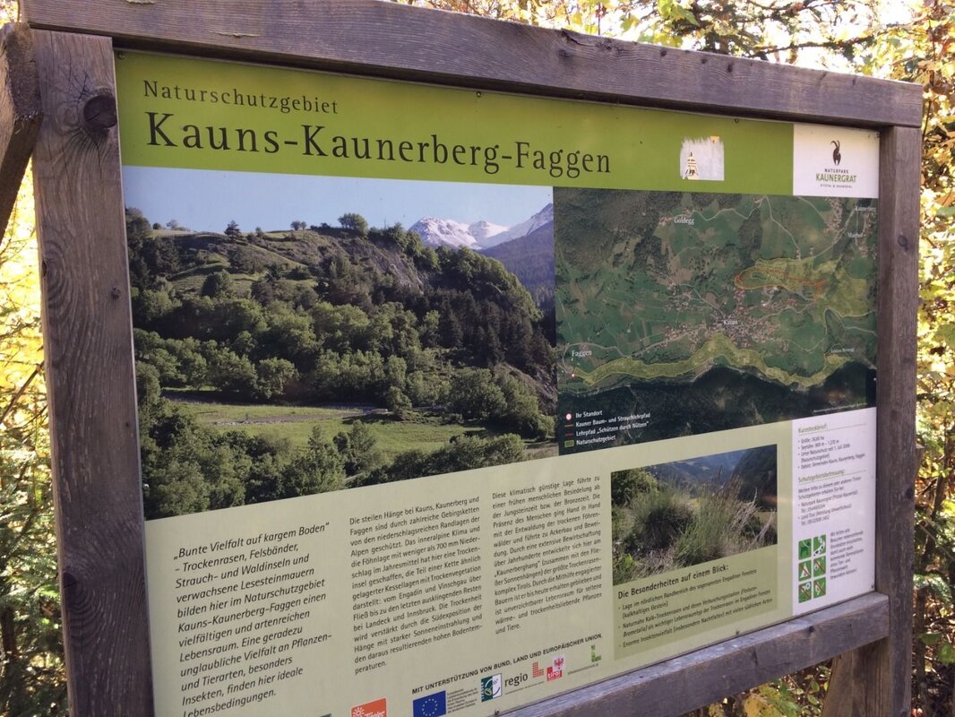 You start the hike at the information office in Prutz. After crossing the pedestrian bridge over the Fagge, follow the path towards Faggen. From the first houses in the municipality of Faggen, follow the road briefly downhill and then turn right until you reach the Faggen municipal office. There you turn right again, reach a church and follow the signs to the left towards Kauns. Follow this side road uphill until a gravel path branches off to the right just before a small chapel.