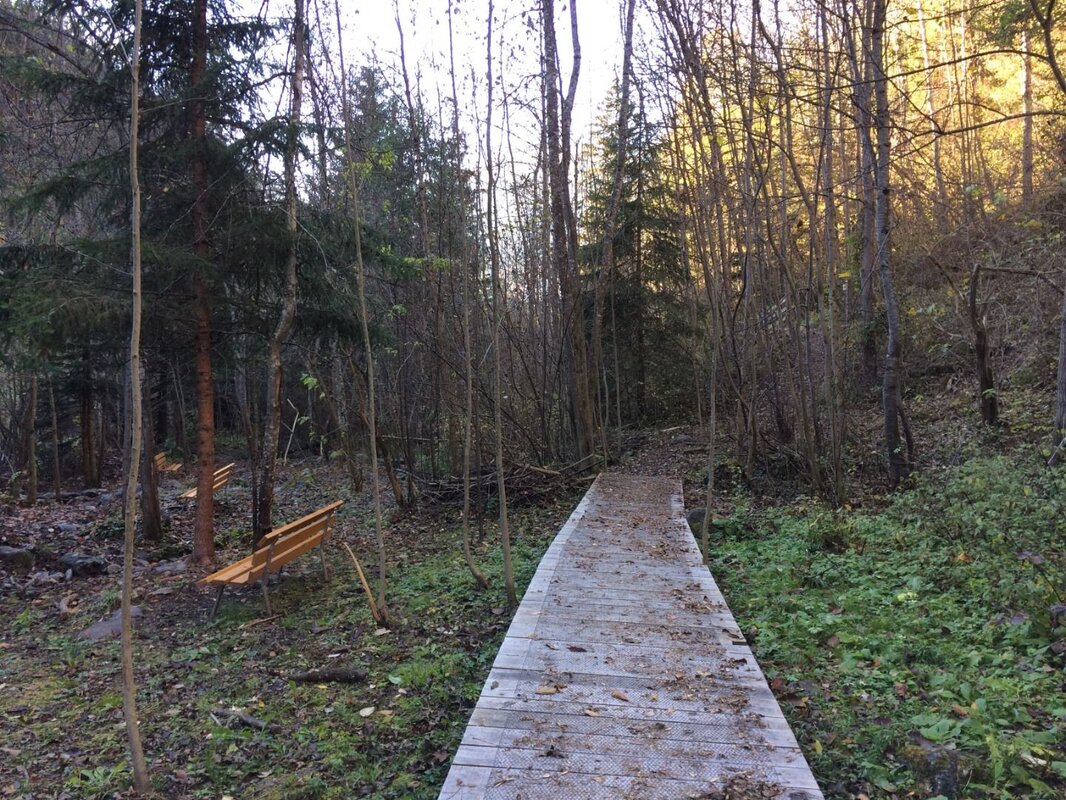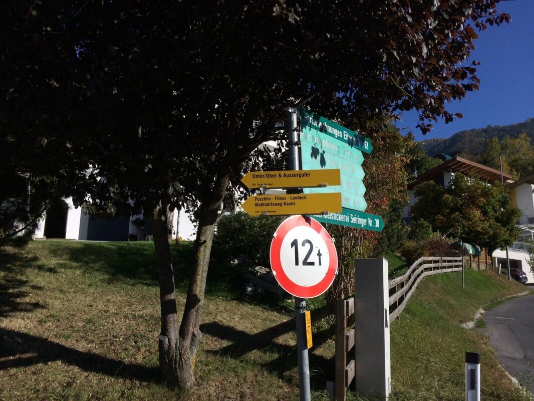 Infobüro Prutz / Fußgängerbrücke an der Kaunertal Landesstraße, nahe der Fischerranch (Ausgangspunkt Beschreibung!) | Parkplatz Gemeindeamt Faggen | Gemeindeamt Kauns