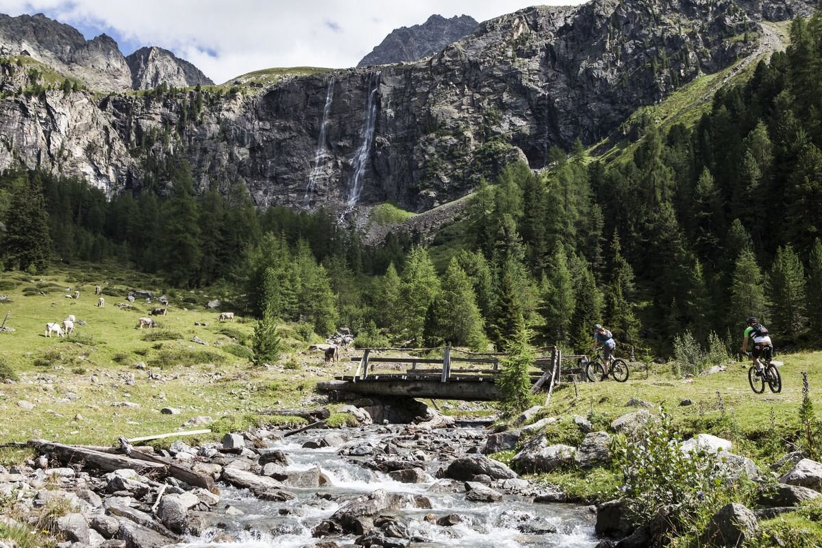 view of the Anton Renk Falls invites you to linger and enjoy. It should be noted that the same way back down is also very steep, which requires good riding skills.