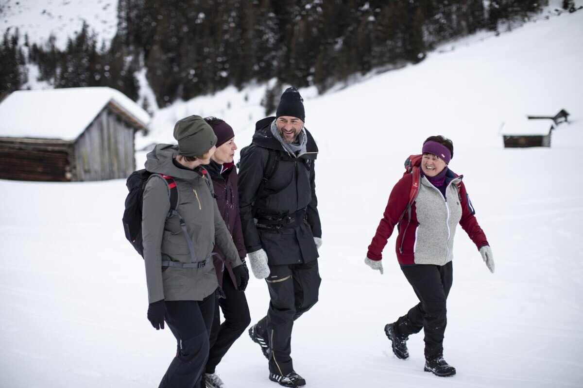 Pleasant winter hike in the idyllic Pfundser Tschey starting at the parking area near the Tscheylücke. From there, follow the signposts towards Platzertal and continue through the wide winter landscape of the Tschey. Along the way you pass the small chapel Chapel Maria Schnee. After around 2.5 kilometres you reach the end of the winter hiking trail. The return follows the same route at first, but after a short distance you can turn right onto a prepared winter hiking path across the meadows, creating a pleasant circular walk.
