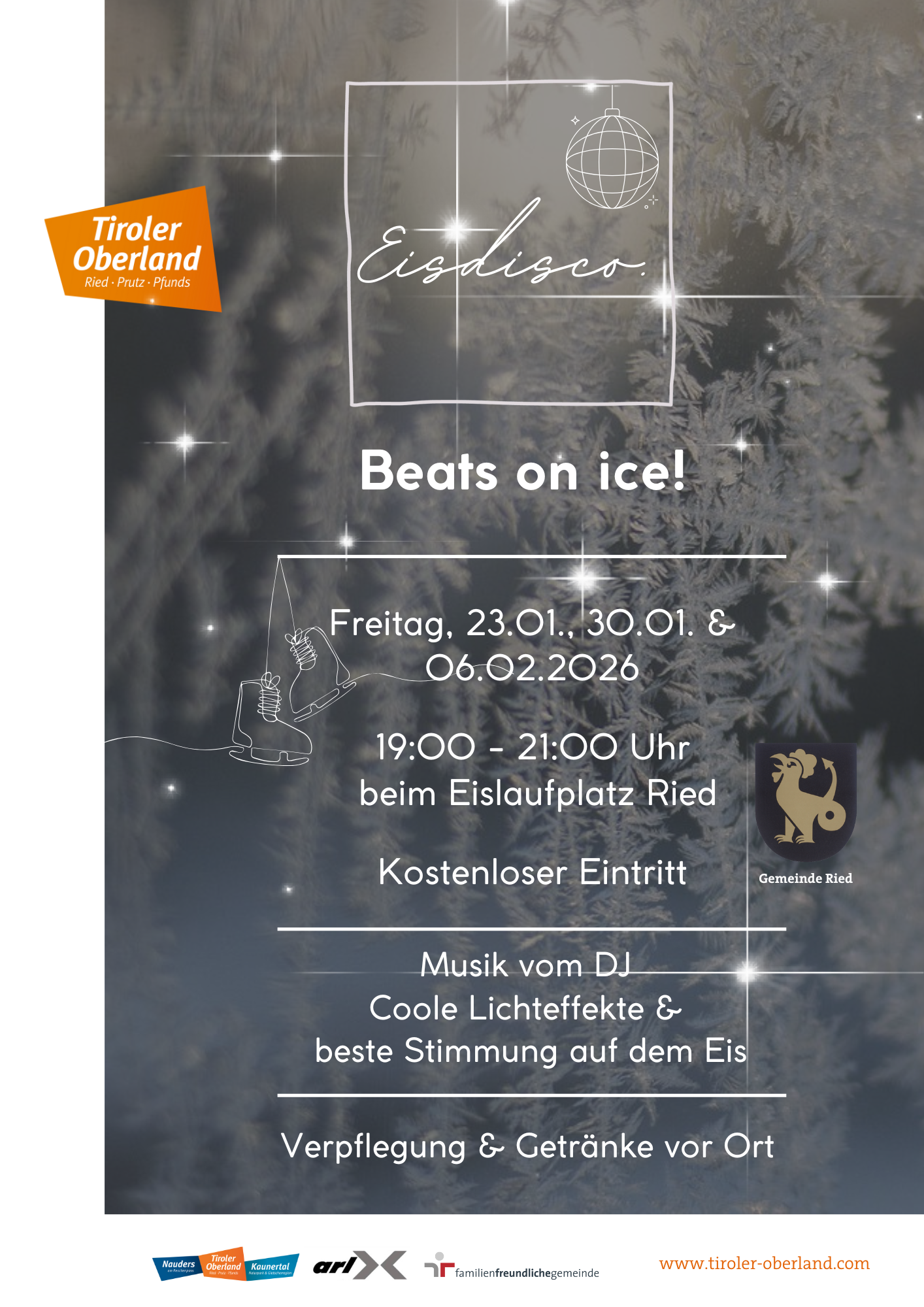 Komm vorbei, schnapp dir deine Schlittschuhe und genieße Beats on Ice am Eislaufplatz in Ried.