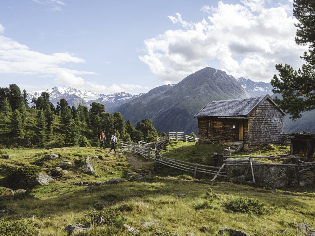Über einen angenehm angelegten Steig gelangt man durch einen schönen Bergwald, der schließlich - mit der Zirbe als Hauptbaumart - im Bereich der Jägerhütte Hapmes, die Waldgrenze bildet.